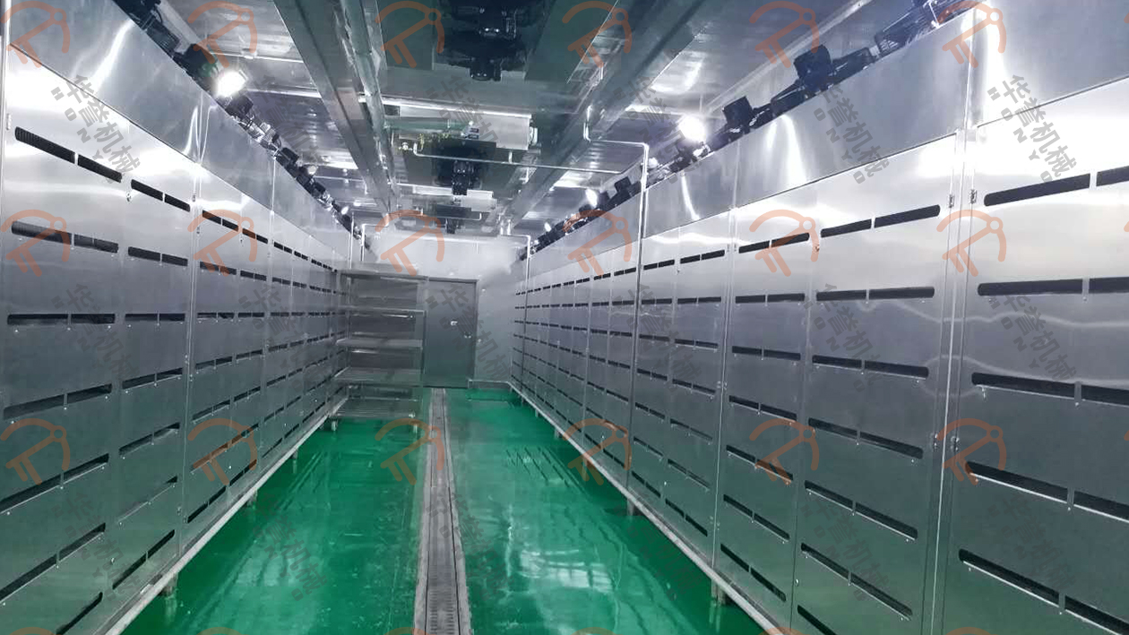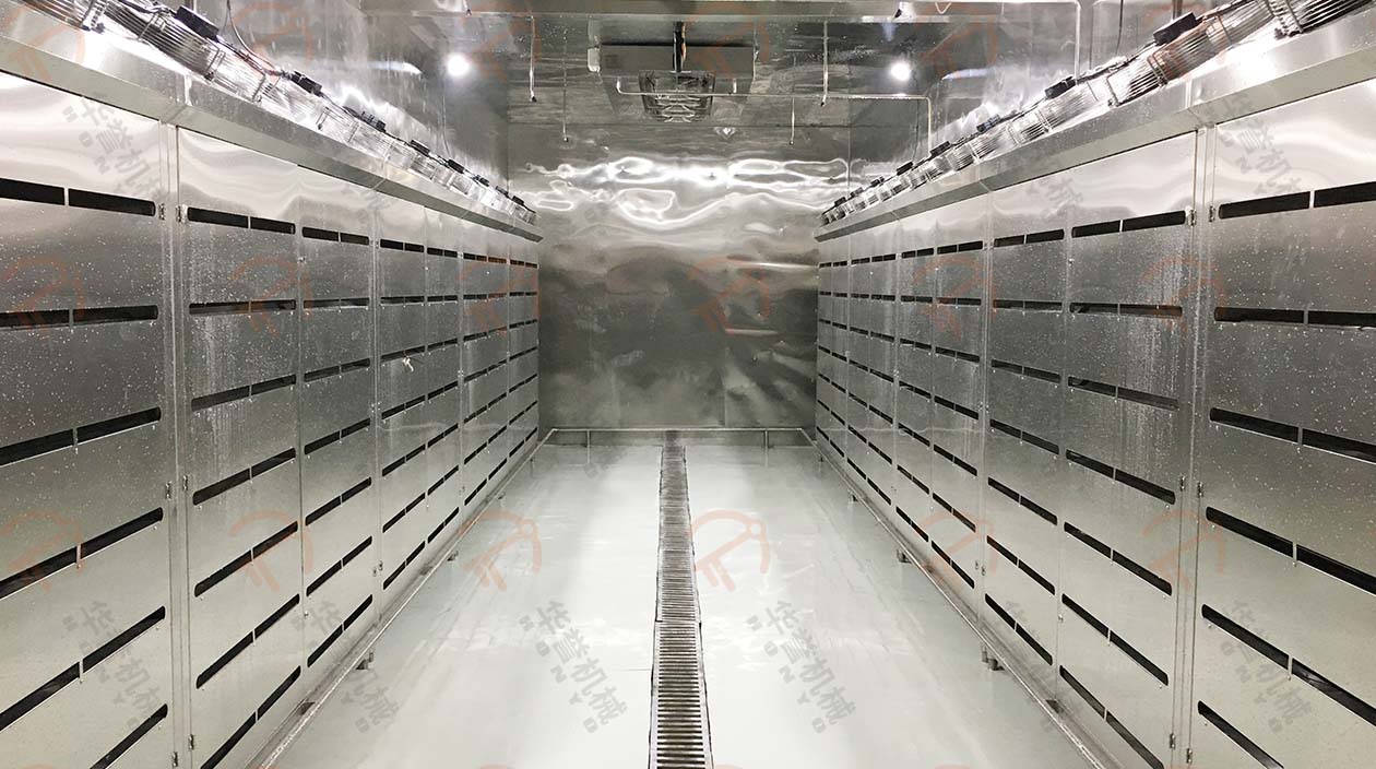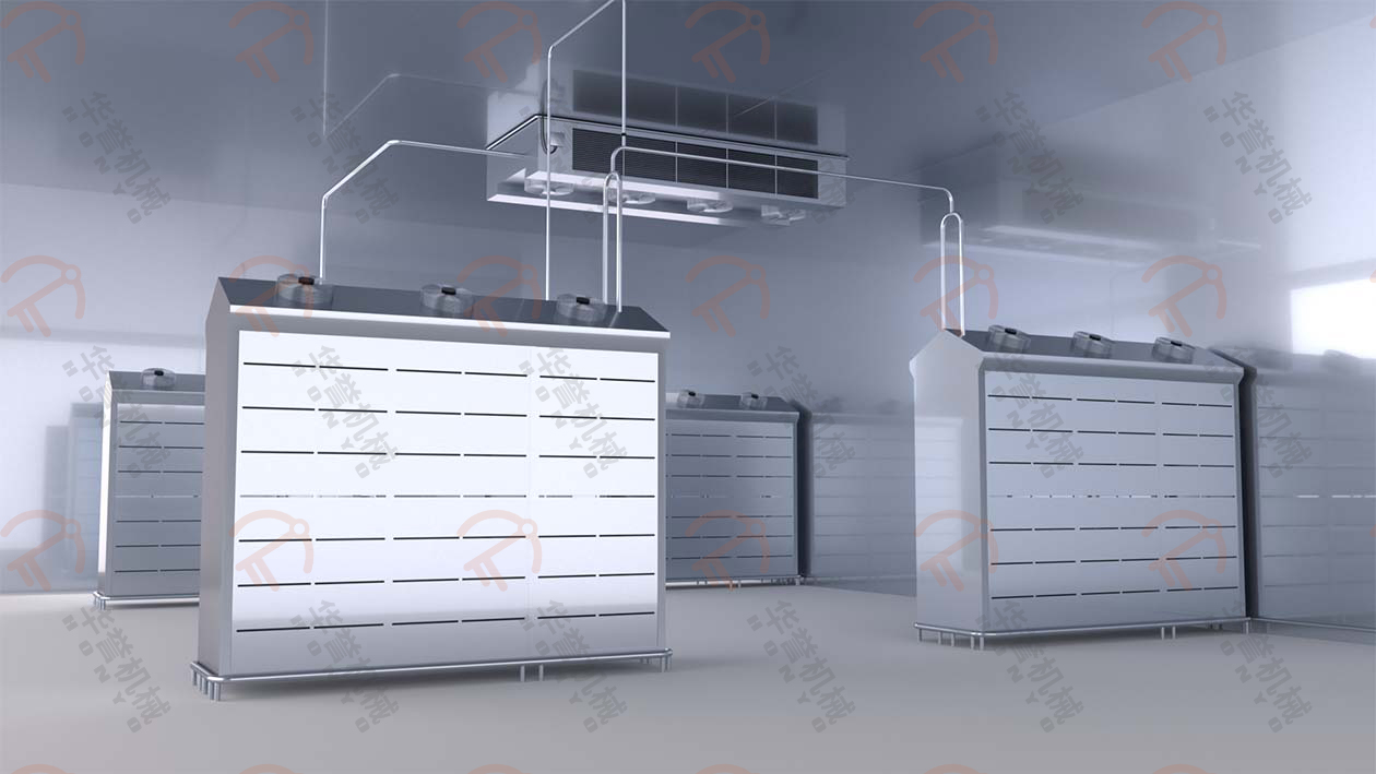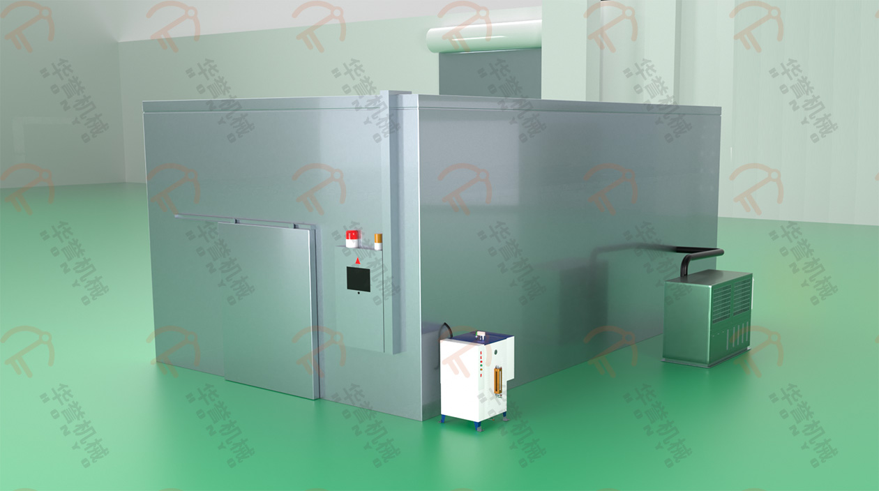 熱源有水蒸汽,電蒸汽發(fā)生器等多種方式?;緸橥ㄟ^管路把熱量傳導進解凍間內。另有輔助加濕方式:霧化加濕,通過加壓將水霧化結合風循環(huán)均勻的分散至設備內部。