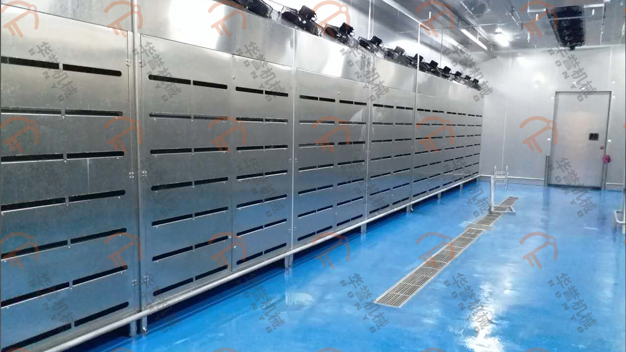 解凍間保溫效果良好,標準解凍間保溫為外噴涂彩鋼內304不銹鋼聚氨酯板材,中間自熄陽燃型聚氨酯夾心隔熱板,庫板厚度100mm。解凍間內有良好的排水設施,方便解凍過程中結露水及時排出,后續(xù)解凍間衛(wèi)生清理。